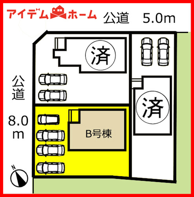 | 駐車場 | 4台(駐車4台可能なカースペース) | 道路の幅員 | 西側8.0m公道 |