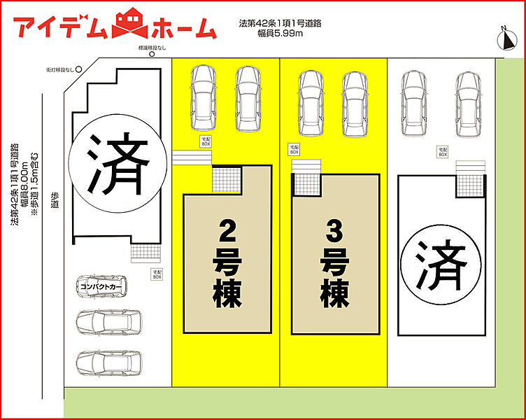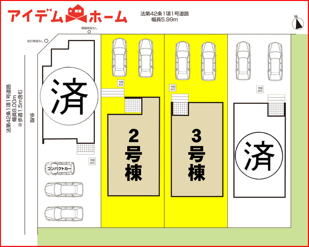 | 駐車場 | 2台(駐車2台可能なカースペース) | 道路の幅員 | 北側5.99m公道 |