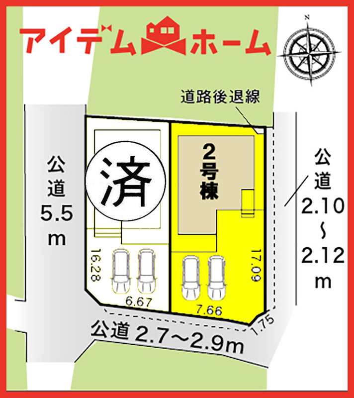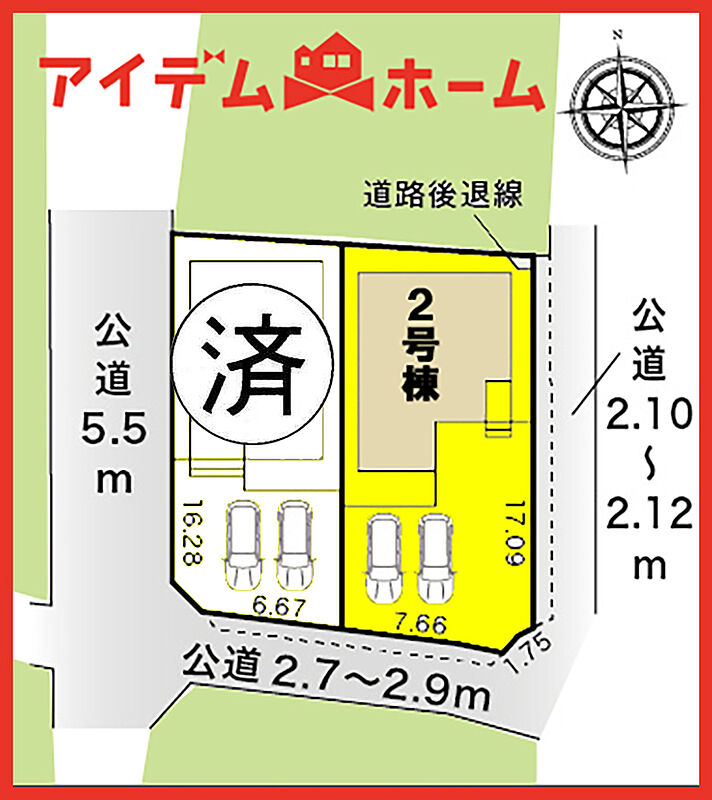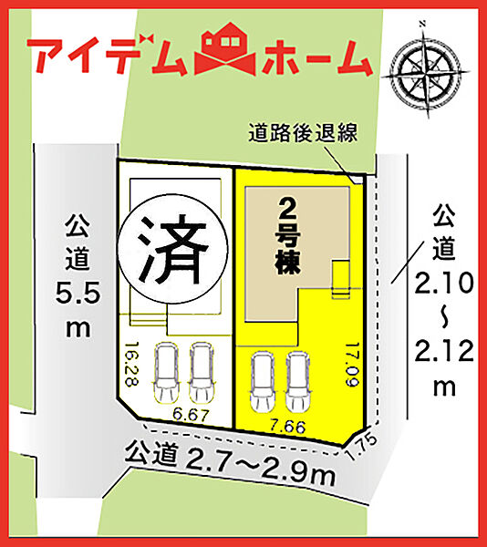 | 駐車場 | 駐車2台可能なカースペース | 道路の幅員 | 西側約5.5m公道、南側約2.7m公道 |