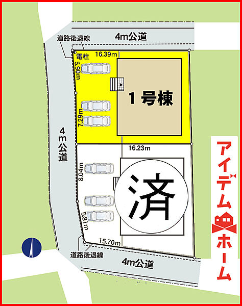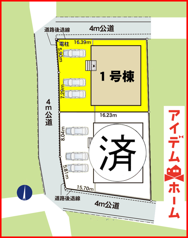 | 駐車場 | 駐車3台可能なカースペース | 道路の幅員 | 西側約3.94m公道、北側約3.05m公道 |