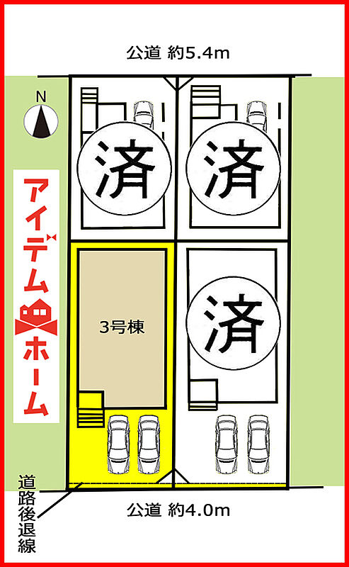 | 駐車場 | 2台(駐車2台可能なカースペース) | 道路の幅員 | 南側 4.0m 一方 公道 |