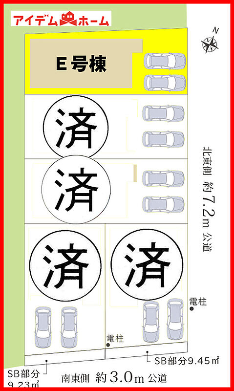 | 駐車場 | 2台 | 道路の幅員 | 北東側7.2m |