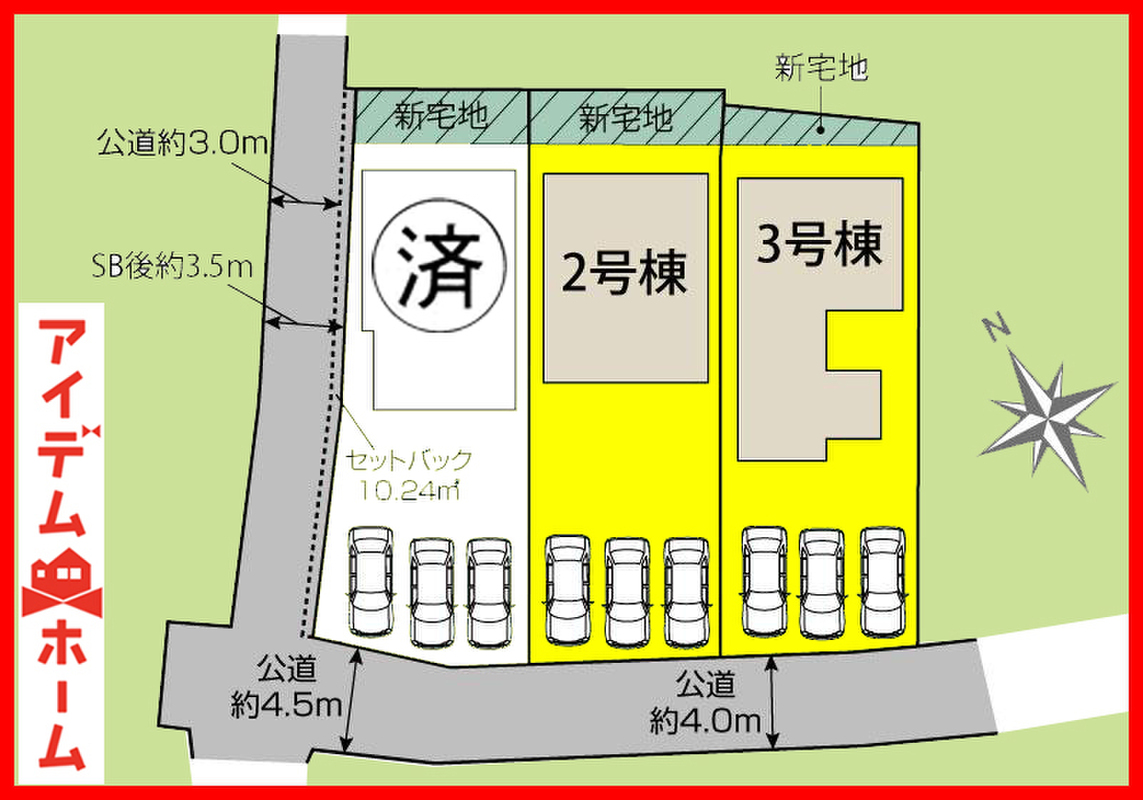 | 駐車場 | 3台(駐車3台可能なカースペース) | 道路の幅員 | 南側 4.0m 一方 公道 |