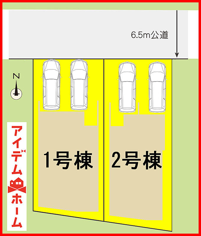 | 駐車場 | 2台(駐車2台可能なカースペース) | 道路の幅員 | 北側約6.5m公道 |