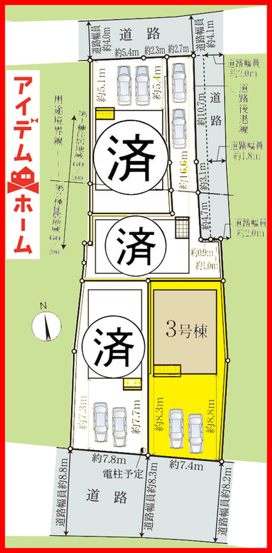 | 駐車場 | 2台(駐車2台可能なカースペース) | 道路の幅員 | 南側約8.25m公道 |