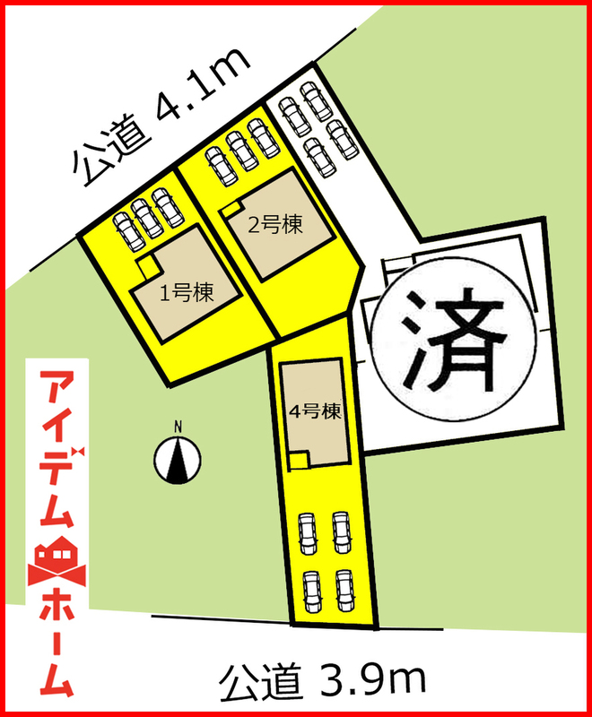 | 駐車場 | 3台 | 道路の幅員 | 北側 4.1mの公道 |