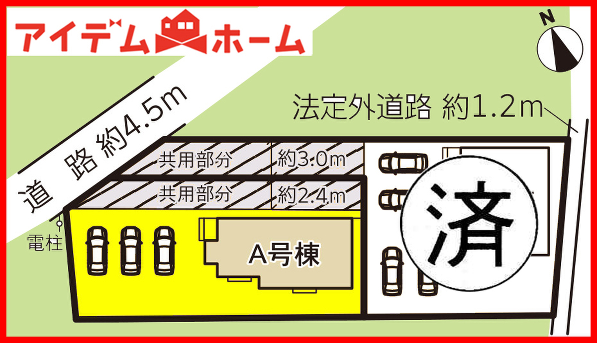 | 駐車場 | 駐車3台 | 道路の幅員 | 北西側 4.5mの公道 |