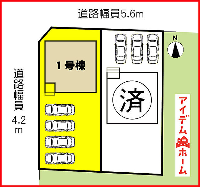 | 駐車場 | 4台 | 道路の幅員 | 西側幅員4.2m、北側幅員5.6m公道 |