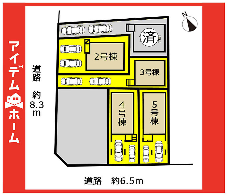 | 駐車場 | 2台 | 道路の幅員 | 西側幅員8.3m、南側幅員6.5m公道 |