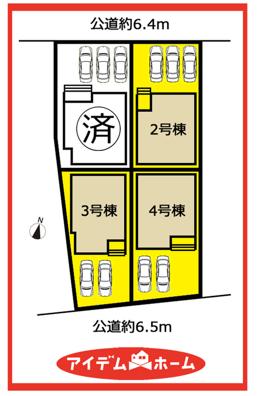 | 駐車場 | 2台 ~ 3台 | 道路の幅員 | 北側幅員6.4m、南側幅員6.5m |