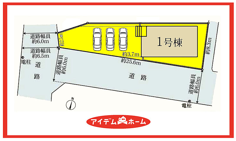 | 駐車場 | 3台 | 道路の幅員 | 西側幅員6.0m、南側幅員6.0m公道 |