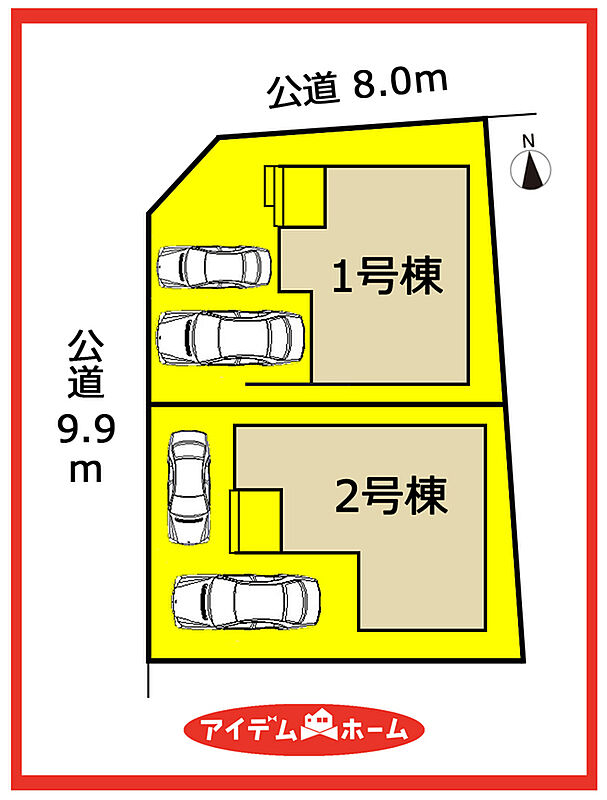 | 駐車場 | 2台 | 道路の幅員 | 北側幅員8.0m、西側幅員9.9m |