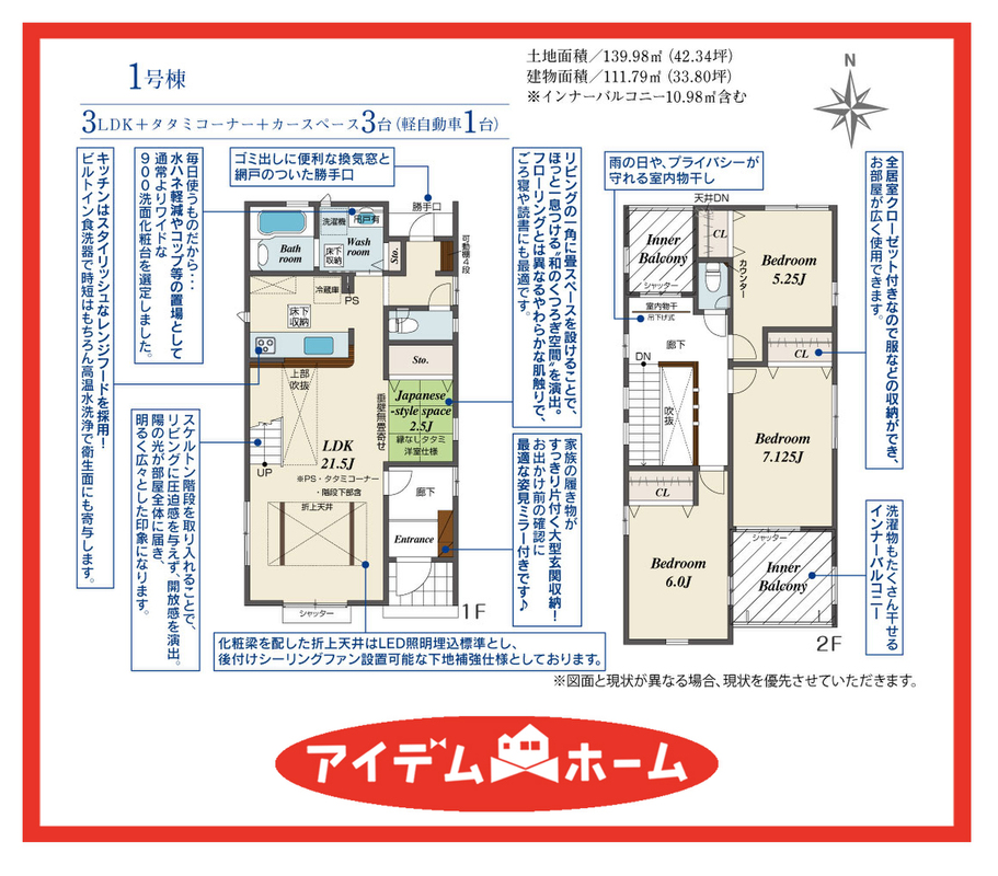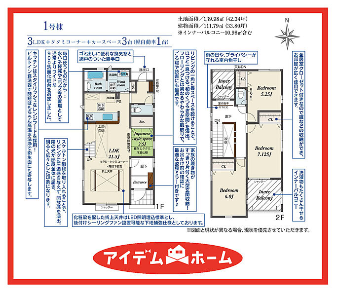 | 建物面積 | 111.79m2 | 土地面積 | 139.98m2 |