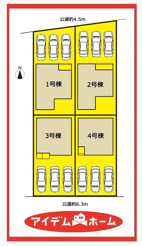 | 駐車場 | 3台 | 道路の幅員 | 北側4.5m、南側6.3m公道 |