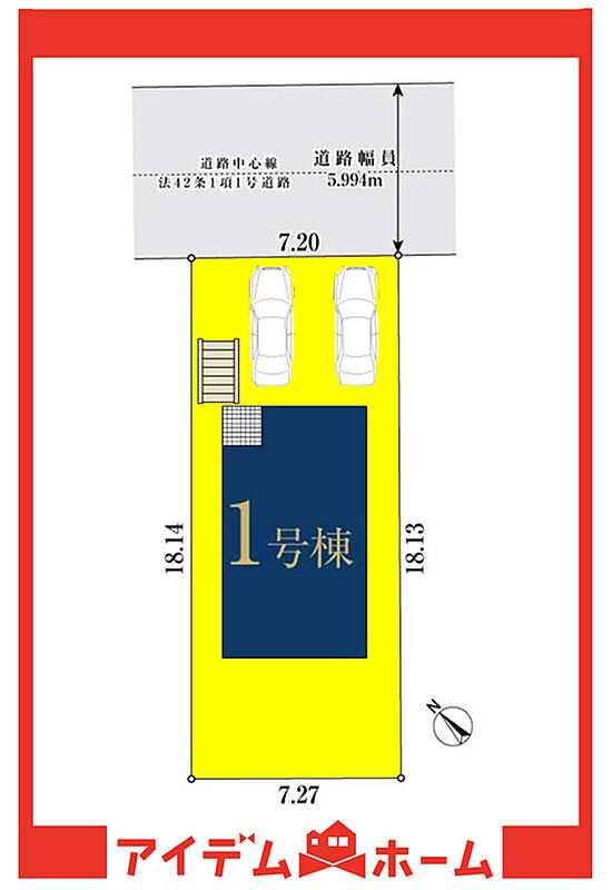 | 駐車場 | 2台 | 道路の幅員 | 北東側幅員5.9m |