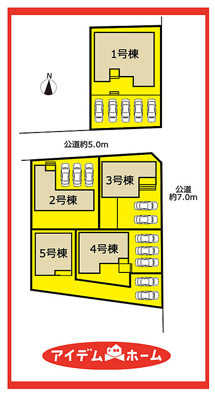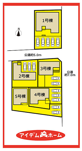 | 駐車場 | 2台 ~ 5台(2台) | 道路の幅員 | 東側幅員7.0m、北側幅員5.0m |