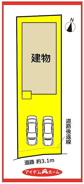 | 駐車場 | 2台(2台) | 道路の幅員 | 南側幅員約3.28m(セットバック含む) |