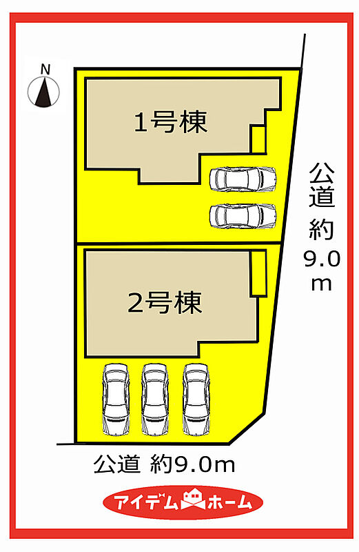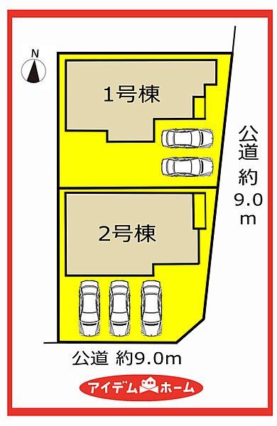 | 駐車場 | 2台 ~ 3台 | 道路の幅員 | 東側幅員9.0m、南側幅員9.0m |