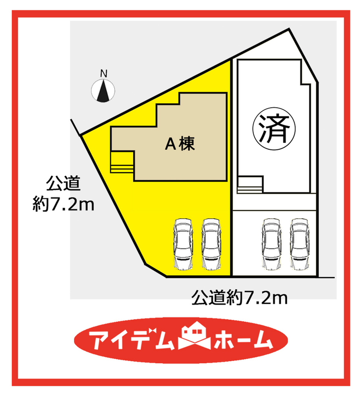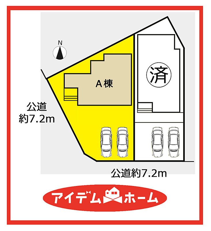 | 駐車場 | 2台 | 道路の幅員 | 南側幅員7.2m、南西幅員7.2m公道 |