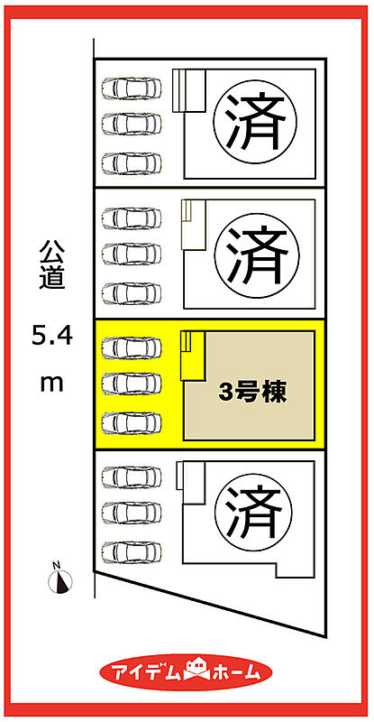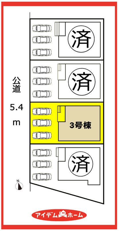 | 駐車場 | 3台 | 道路の幅員 | 西側5.4m |