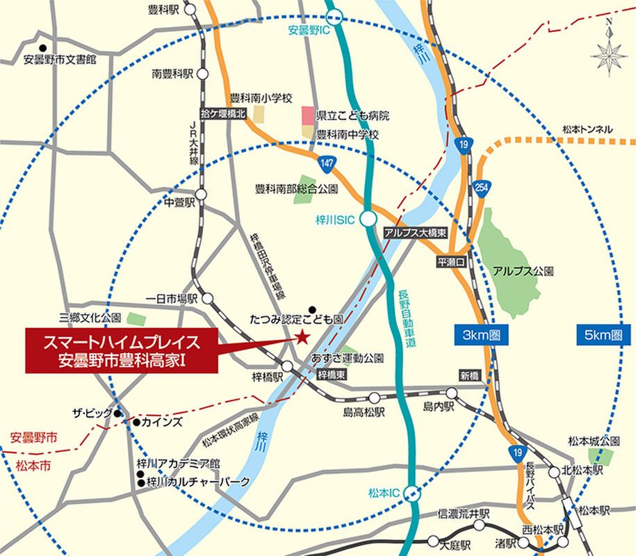 ・JR大糸線「梓橋」駅まで歩いて8分。「松本」駅まで乗車10分