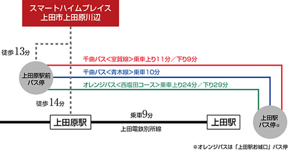 上田電鉄別所線「上田原」駅 徒歩14分~14分 千曲バス「上田原駅前」 徒歩13分~13分 |