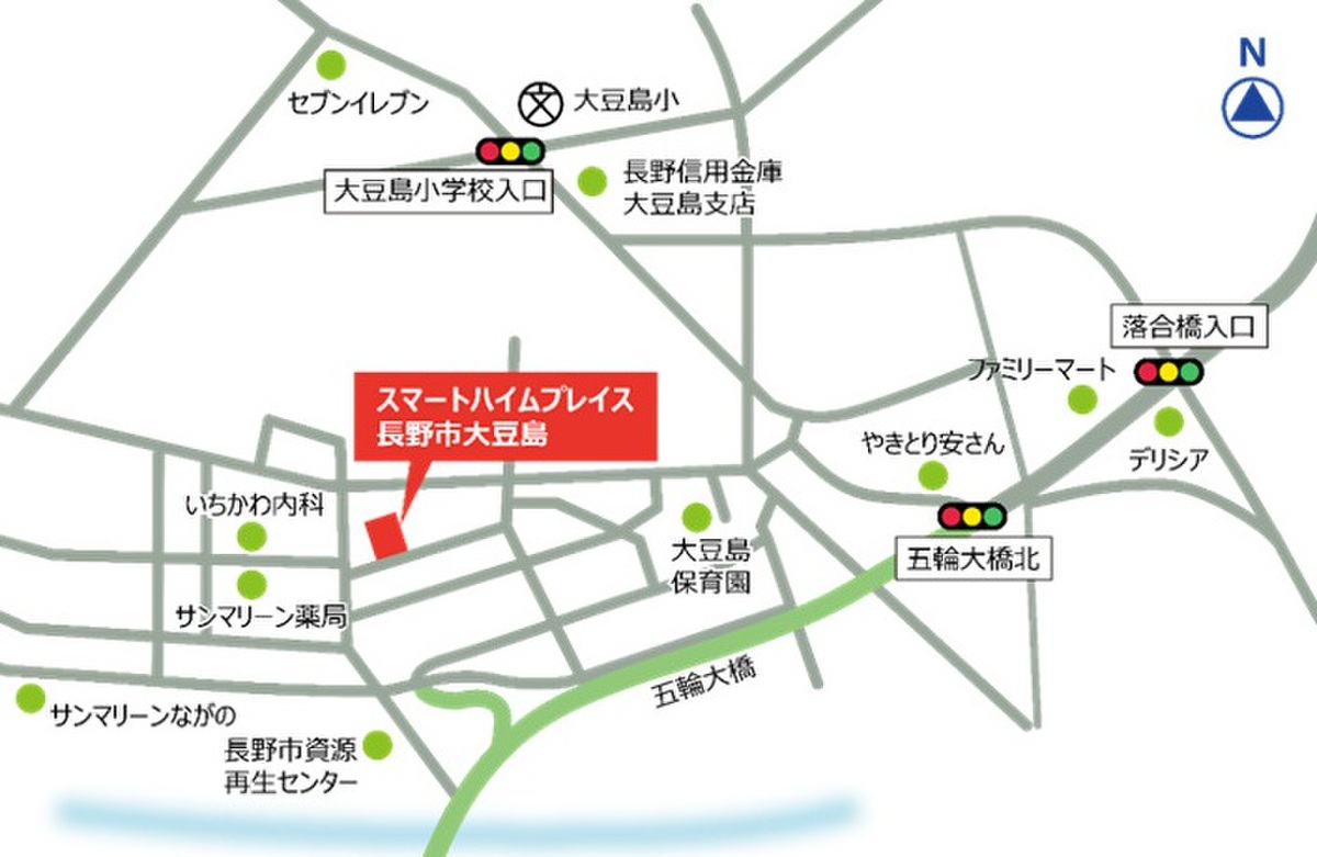 JR北陸新幹線「長野」駅 約4,290 ~4,320m 「松岡」バス停 徒歩1分~2分 約70 ~100m 「松岡南」バス停 徒歩8分~8分 約600 ~630m |