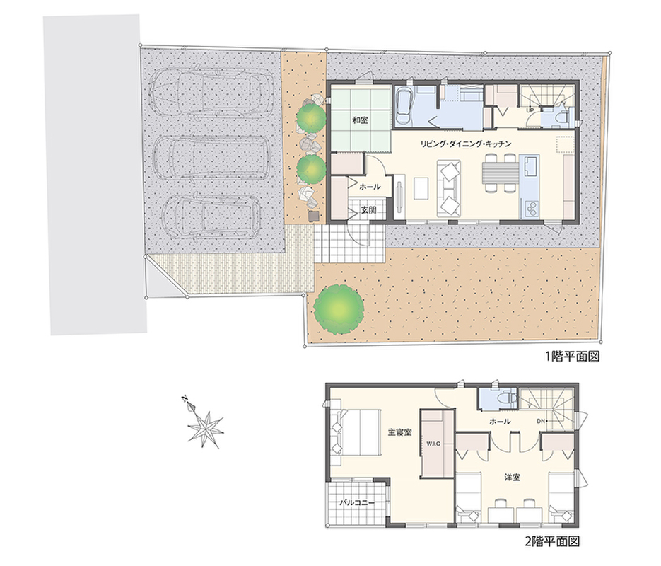 - ※完成予想図やCG合成画像は、門塀・植栽・庭・外観等、実際とは多少異なる場合があります。