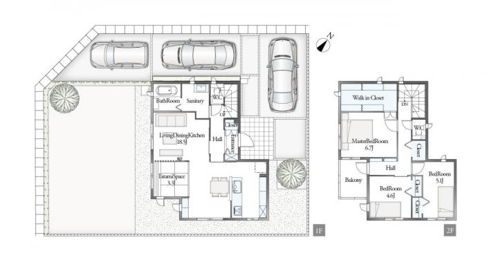 | 建物面積 | 99.59m2~107.94m2 | 土地面積 | 208.41m2~208.78m2 |