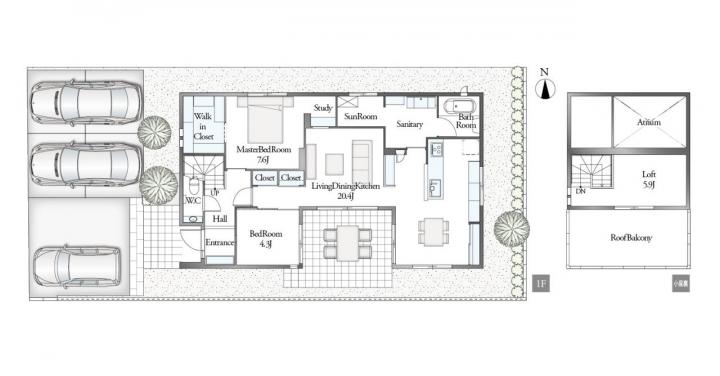 ハンドメイド雑貨やプラモデルなどクリエイティブな作業が好きな方が自分時間と家族時間を両立できる、3LDK+αのホール空間で日々の暮らしも趣味も楽しめるプラン。