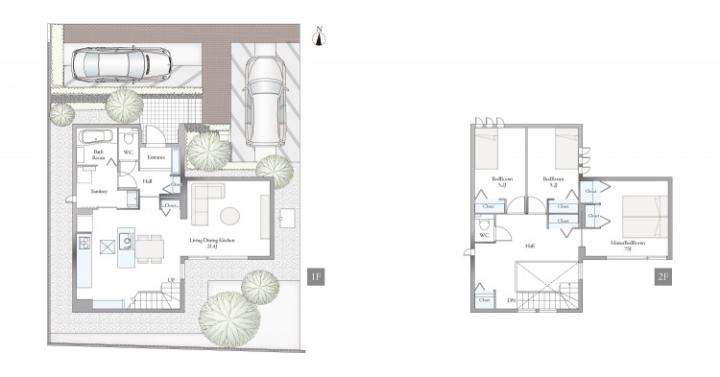 | 間取り | 2LDK+S~3LDK | 建物構造 | 2階建て 構造:木造 工法:ユニット工法、その他/2×6ユニット工法 |