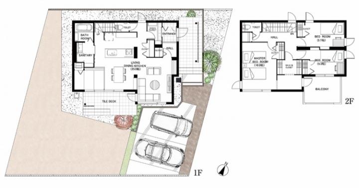 | 建物面積 | 102.35m2~113.49m2 | 土地面積 | 208.94m2~245.30m2<私道負担あり:191.00m2×持分1/20~191.00m2×持分1/20> |