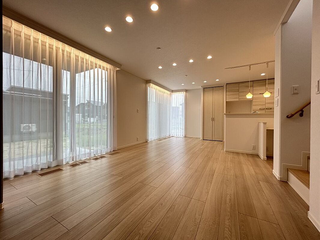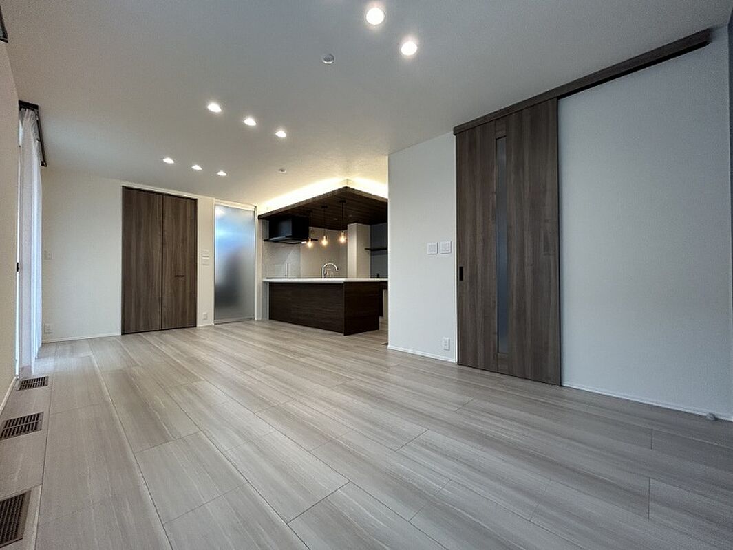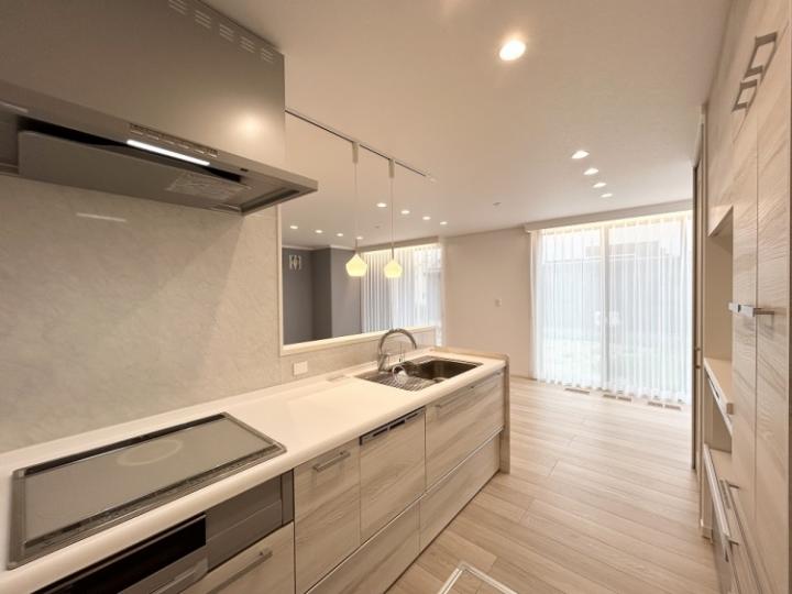 LDKを見渡せる対面式キッチン。広々とした空間でゆったりと過ご...