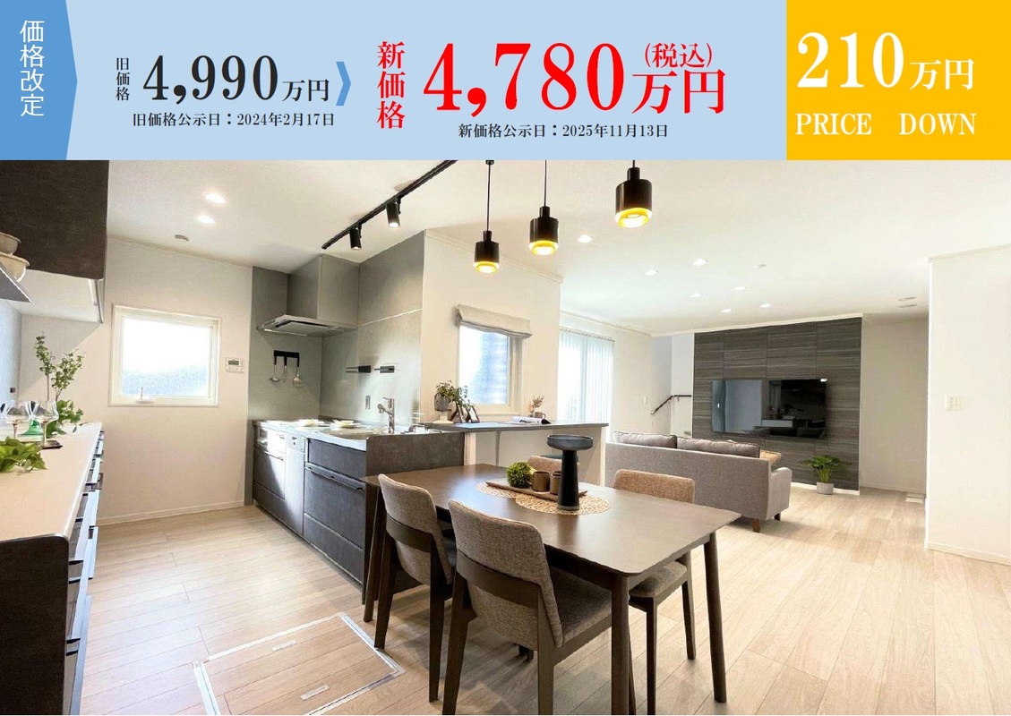 3号地分譲住宅 販売価格を改定いたしました。4990万円(税込)(旧価格公表日・令和6年7月14日)から4780万円(税込)(価格改定日・令和7年11月13日)お問い合わせはお早めに!