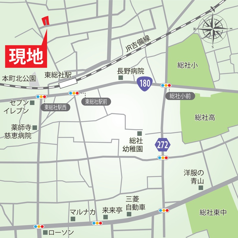 JR吉備線「東総社」駅 中鉄・備北バス「東総社バス停」 徒歩5分~6分 |