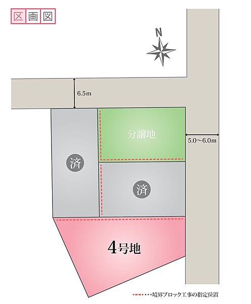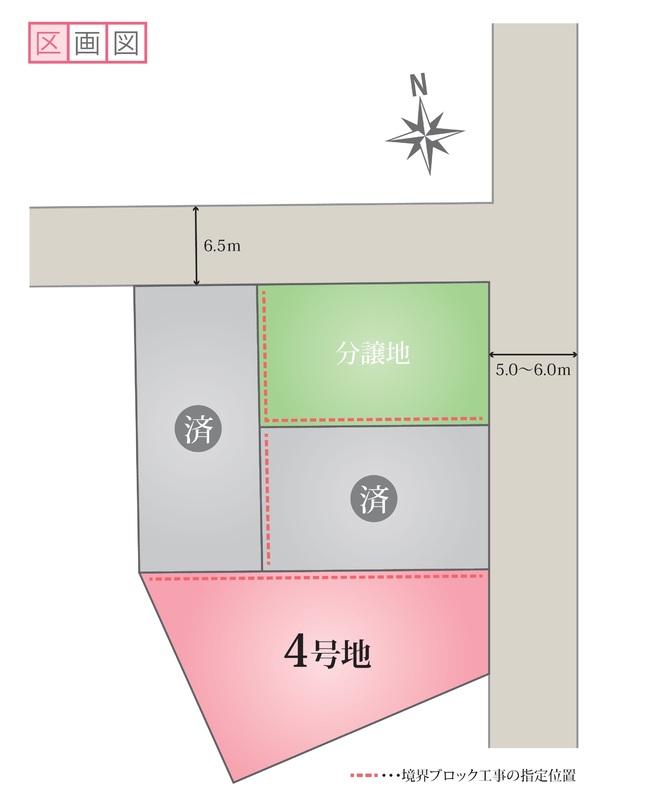 | 駐車場 | 1台 ~ 3台 | 道路の幅員 | 北側6.5m、南側5.0~6.0m |