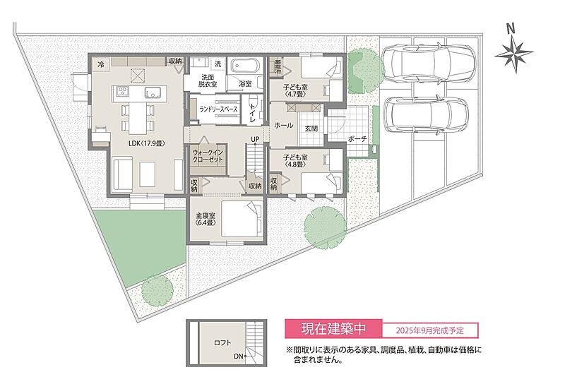 - ※完成予想図やCG合成画像は、門塀・植栽・庭・外観等、実際とは多少異なる場合があります。