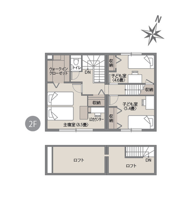 ■ロフト付き物件で、家の中をもっと広く、もっとスマートにかさばる荷物は最上階のロフトへ。生活空間をスッキリ保ち、多目的に使える予備空間が暮らしにゆとりを生みます。