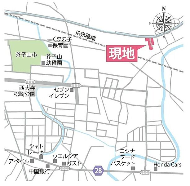 ■学校も買い物も徒歩圏内に揃う便利な住環境・通勤通学にも便利なJR赤穂線「大多羅駅」まで徒歩約17分・スーパー徒歩約12分・小学校徒歩約12分、中学校徒歩約17分