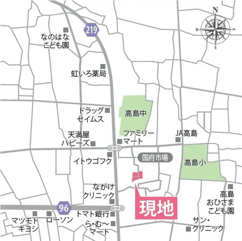 - ※地図、航空写真情報および地形ならびに周辺のお店・施設は、必ずしも現況を表すものではありません。