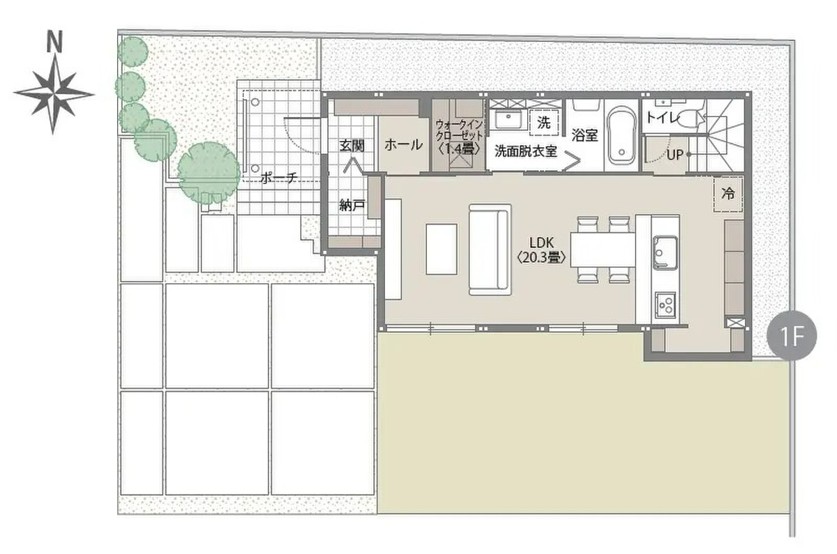 - ※完成予想図やCG合成画像は、門塀・植栽・庭・外観等、実際とは多少異なる場合があります。