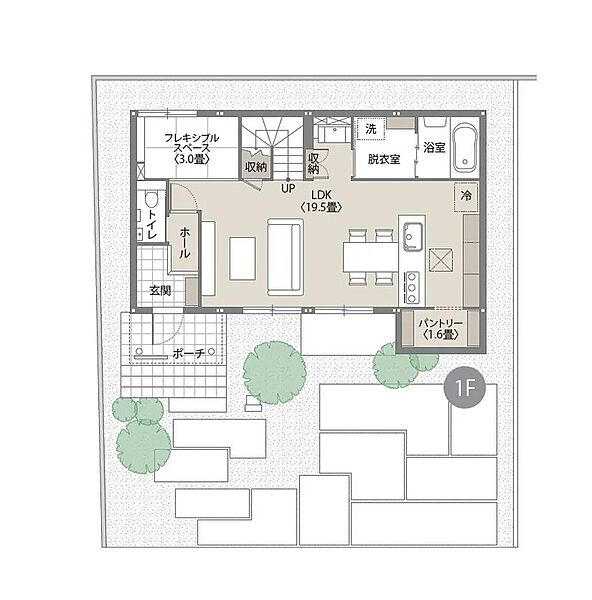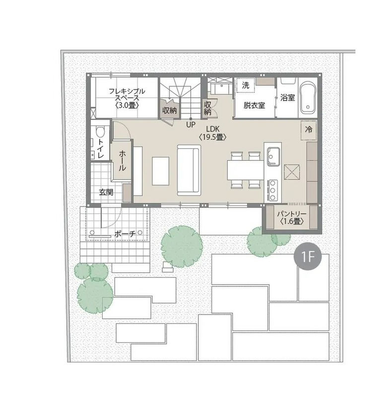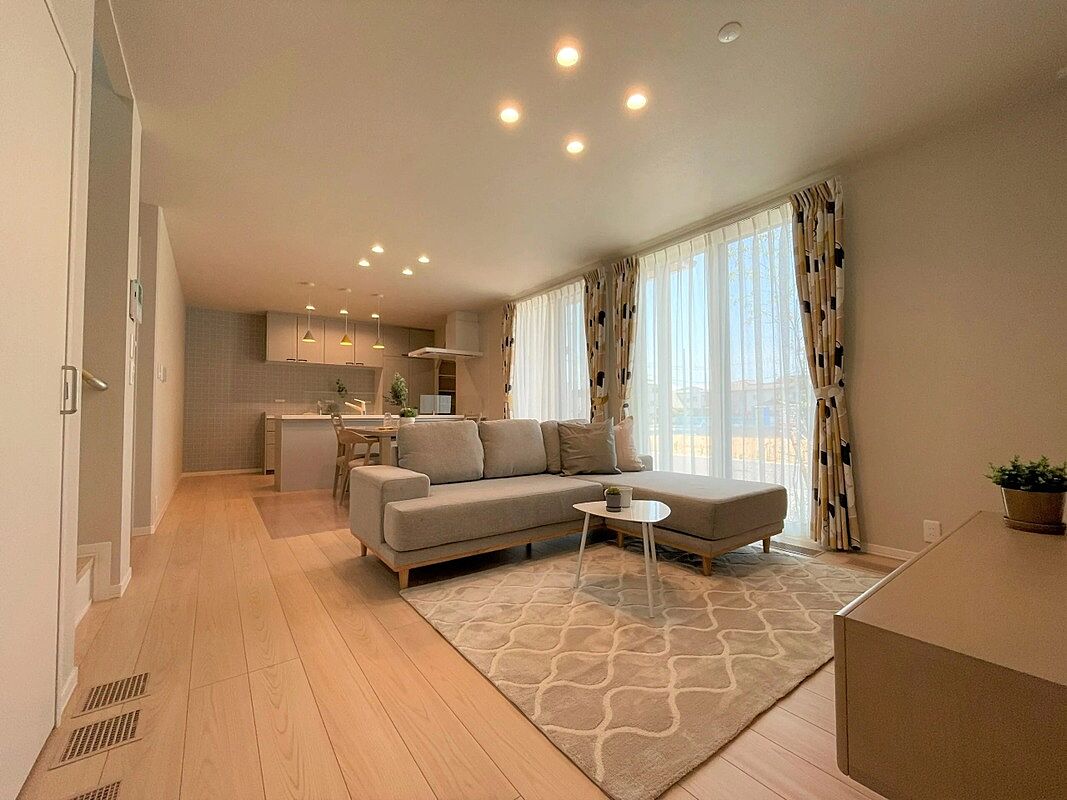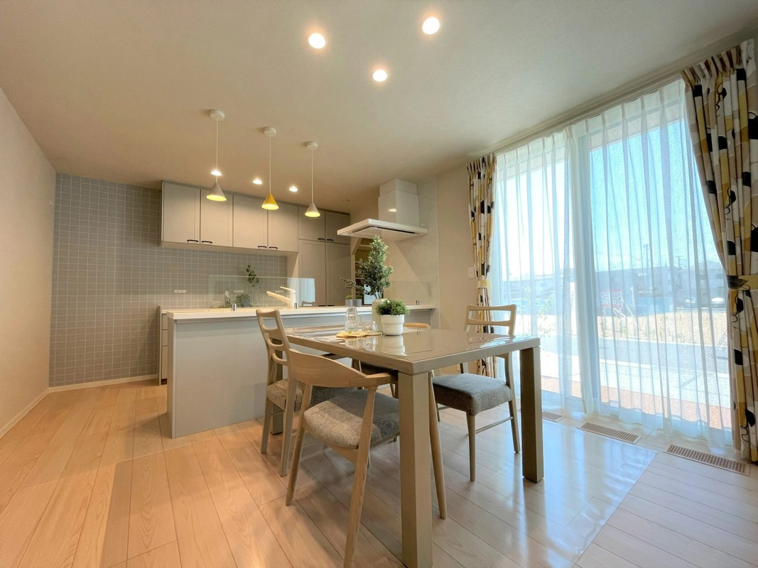 19.5畳の広々LDKに、パントリーやフレキシブルスペース、4.4畳のWICなど収納充実。家族の暮らしに合わせて、すっきりと快適に過ごせる住まいです。