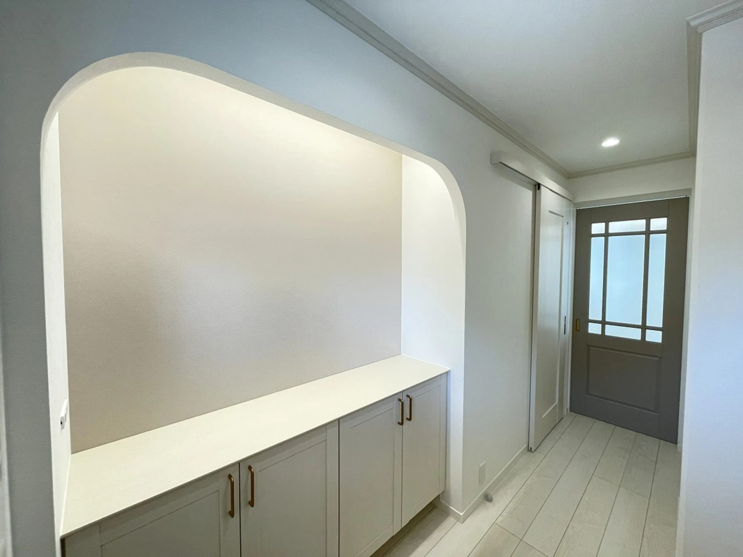 窓からの自然光と天井の間接照明が調和し、LDKをやさしく包み込む空間に。昼と夜で異なる表情を楽しめる、心地よさあふれる住まいです。