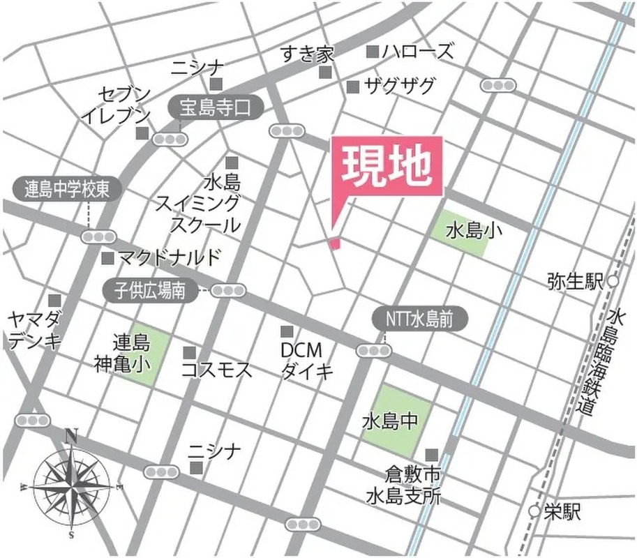 水島臨海鉄道「弥生」駅 徒歩13分 両備バス「瑞穂町」バス停 徒歩6分 |