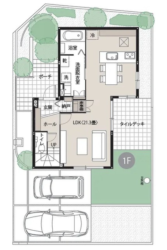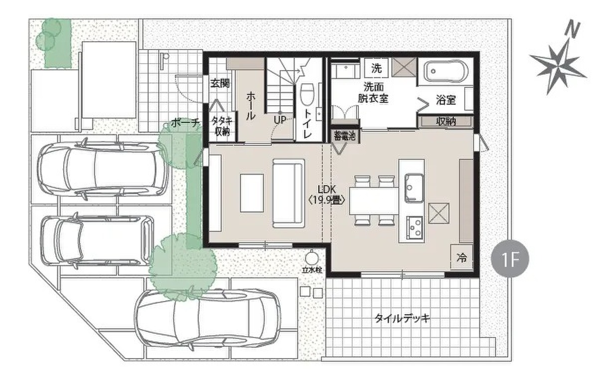 2号地_1階 間取り 3LDK 価格 4993.8万円 建物面積 1F:51.56m2(15.59坪) 土地面積 161.74m2(48.92坪) -