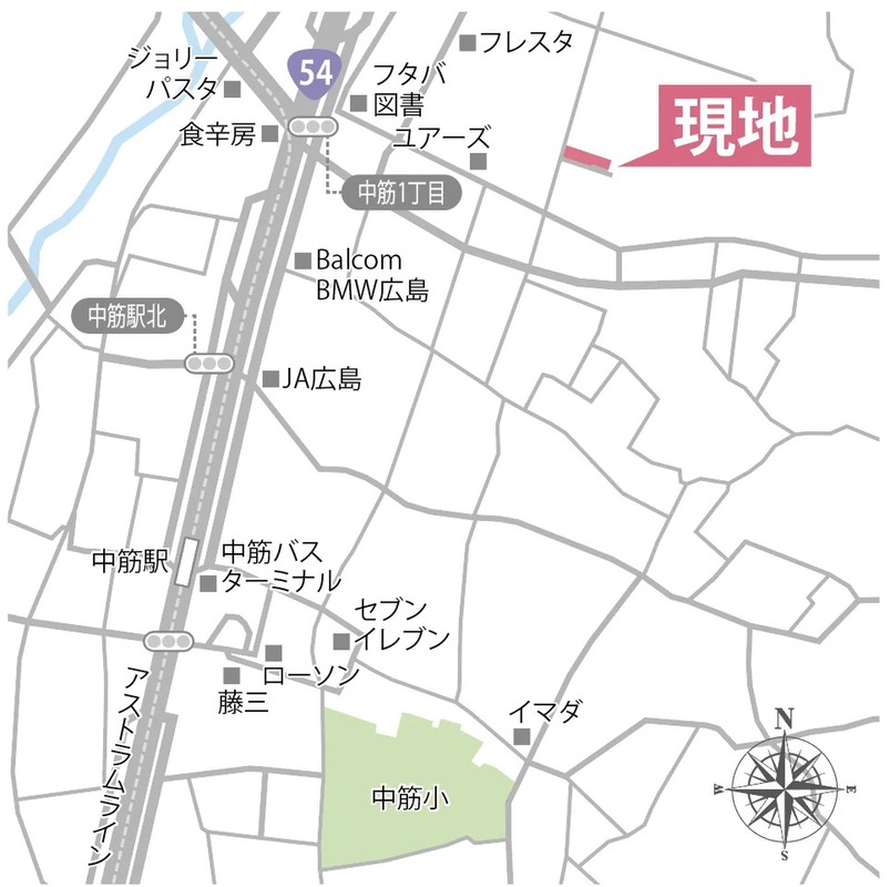 広島高速交通アストラムライン「中筋」駅 徒歩8分 JR可部線「古市橋」駅 徒歩20分 |