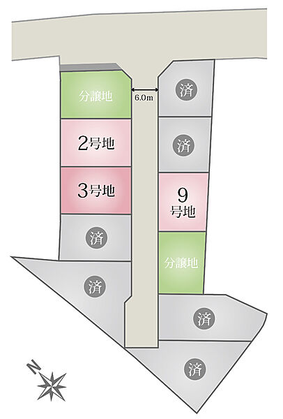 | 駐車場 | 2台 ~ 4台(並列駐車を行いやすいように間取りを設計しております!) | 道路の幅員 | 6.0m |