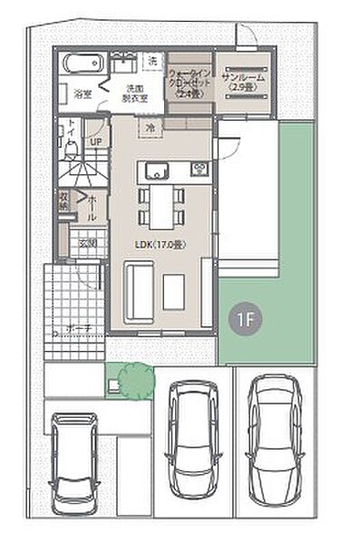 | 駐車場 | 1台 ~ 3台(並列3台駐車可能) | 道路の幅員 | 南側6.0m |