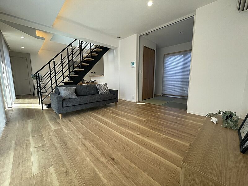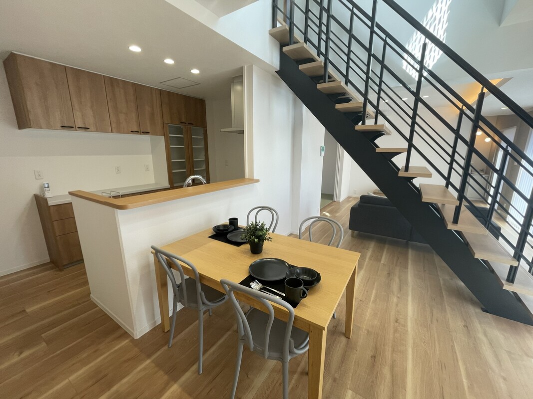 階段がLDKの中心にあります。ご家族の生活動線がLDKに集中す...