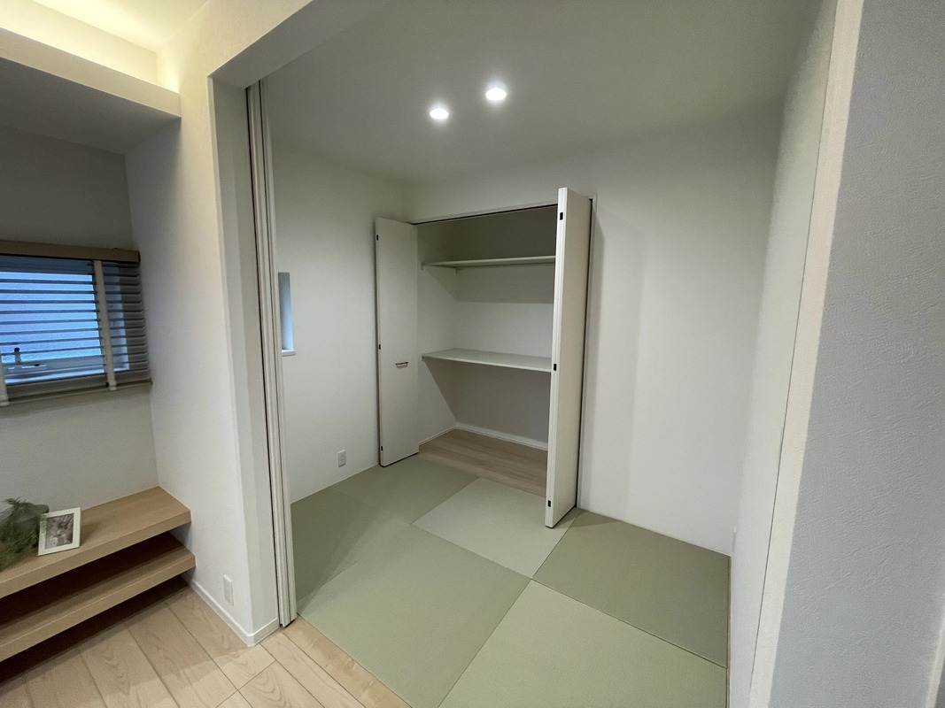 リビングとつながる畳スペースを採用しており、くつろぎと実用性を兼ね備えた空間です。家族団らんはもちろん、来客時やお子さまの遊び場としても活用できます。